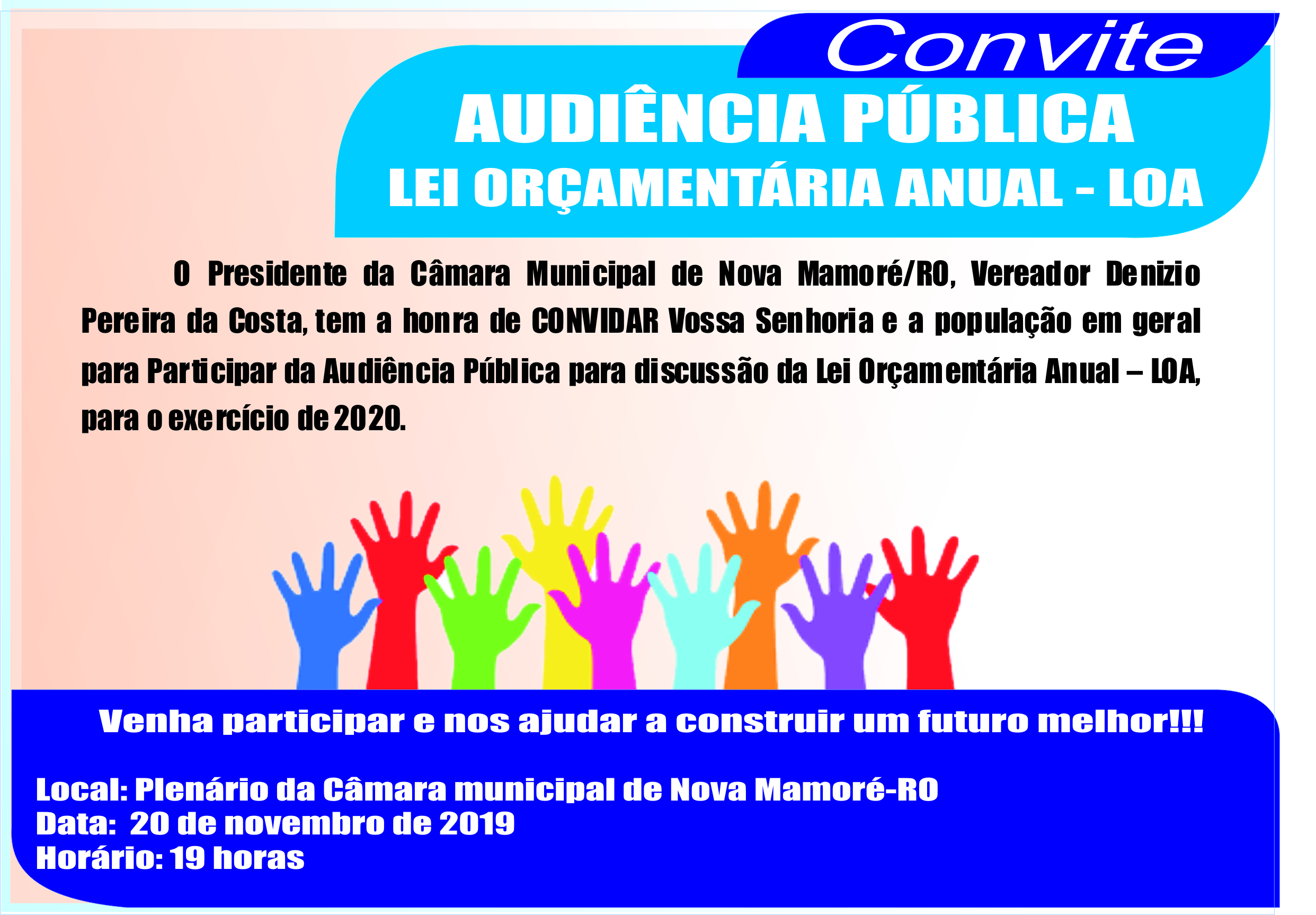 (ATA DE AUDIÊNCIA PÚBLICA PARA DISCUSSÃO DO PROJETO DE LEI Nº 061-GP/2019 QUE TRATA DA LOA 2020)